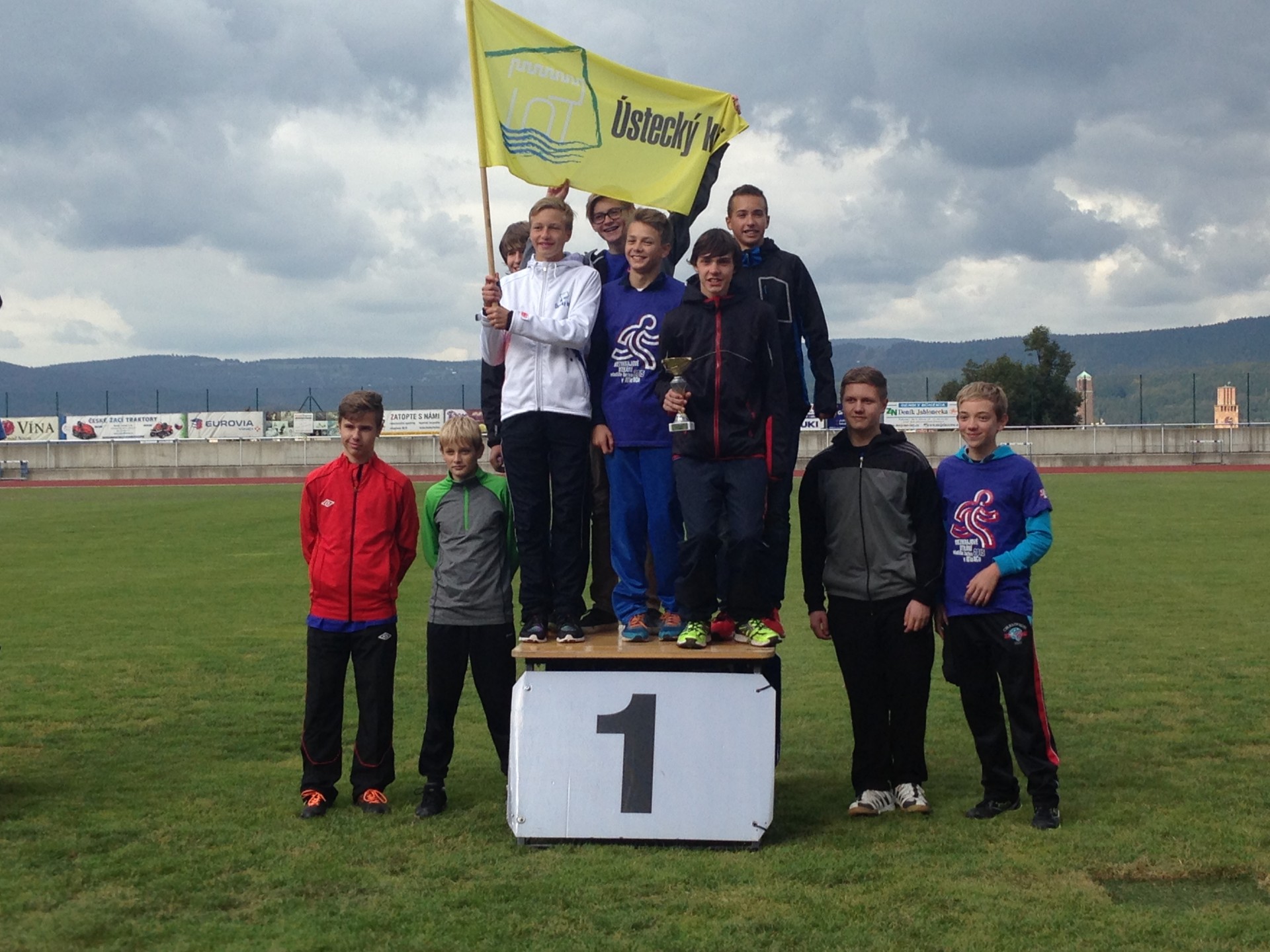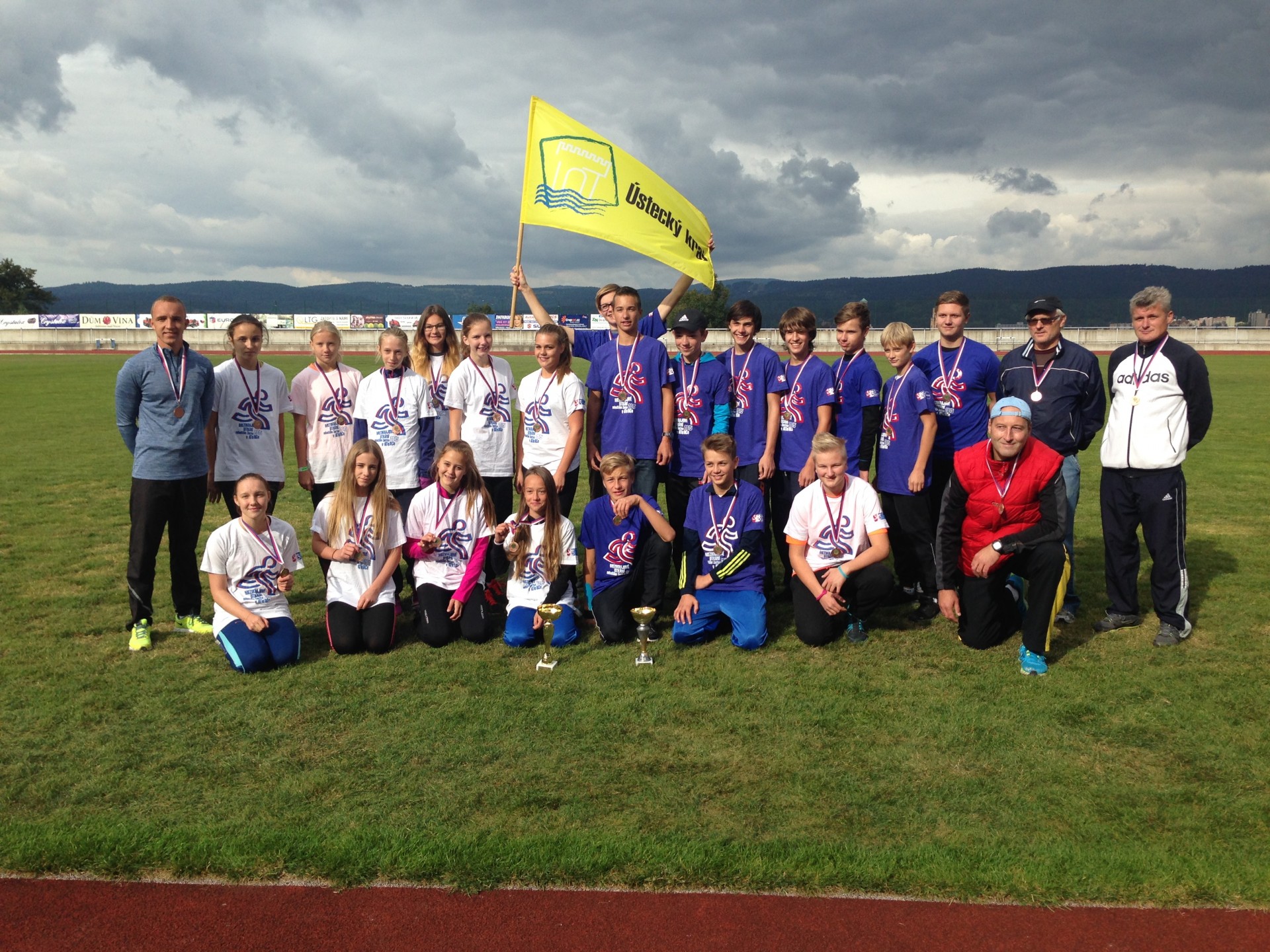 Celkem pět krajů (Ústecký, Liberecký, Jihočeský, Královéhradecký a Pardubický) hostil Jablonec nad Nisou při  Mezikrajového utkání družstev mladšího žactva. Mladší žáci měli v soutěži z každého kraje po dvou družstvech, tudíž byla soutěž rozdělena na dvě skupiny. V jedné skupině obsadili naši mladší žáci 1. místo a v druhé skupině skončili na 3. příčce. Přičemž Jonáš Jiránek pomohl vítězstvím v běhu na 1000 m a 6. místem v hodu míčkem. Děvčata skončila na bramborové pozici. Simona Weberová vybojovala 9. místo v běhu na 60 m a 10. místo v běhu na 300 m. Zajímavostí byla štafeta 8 x 100 m, kde běželi vždy čtyři chlapci a čtyři dívky, náš krajský výběr se Simonou a Jonášem doběhl na 3. místě. IMG_4161 IMG_4155 IMG_4164 IMG_4159