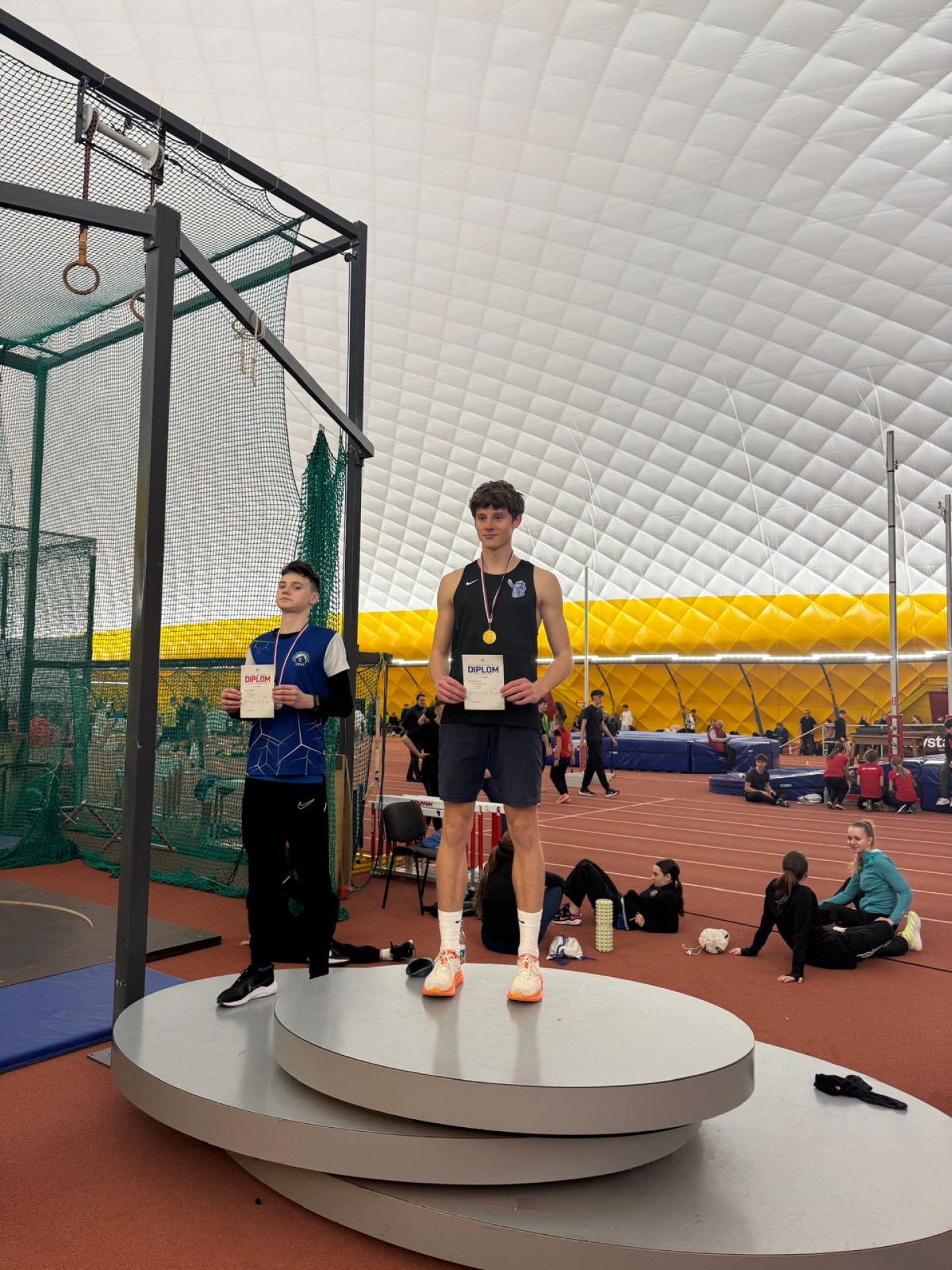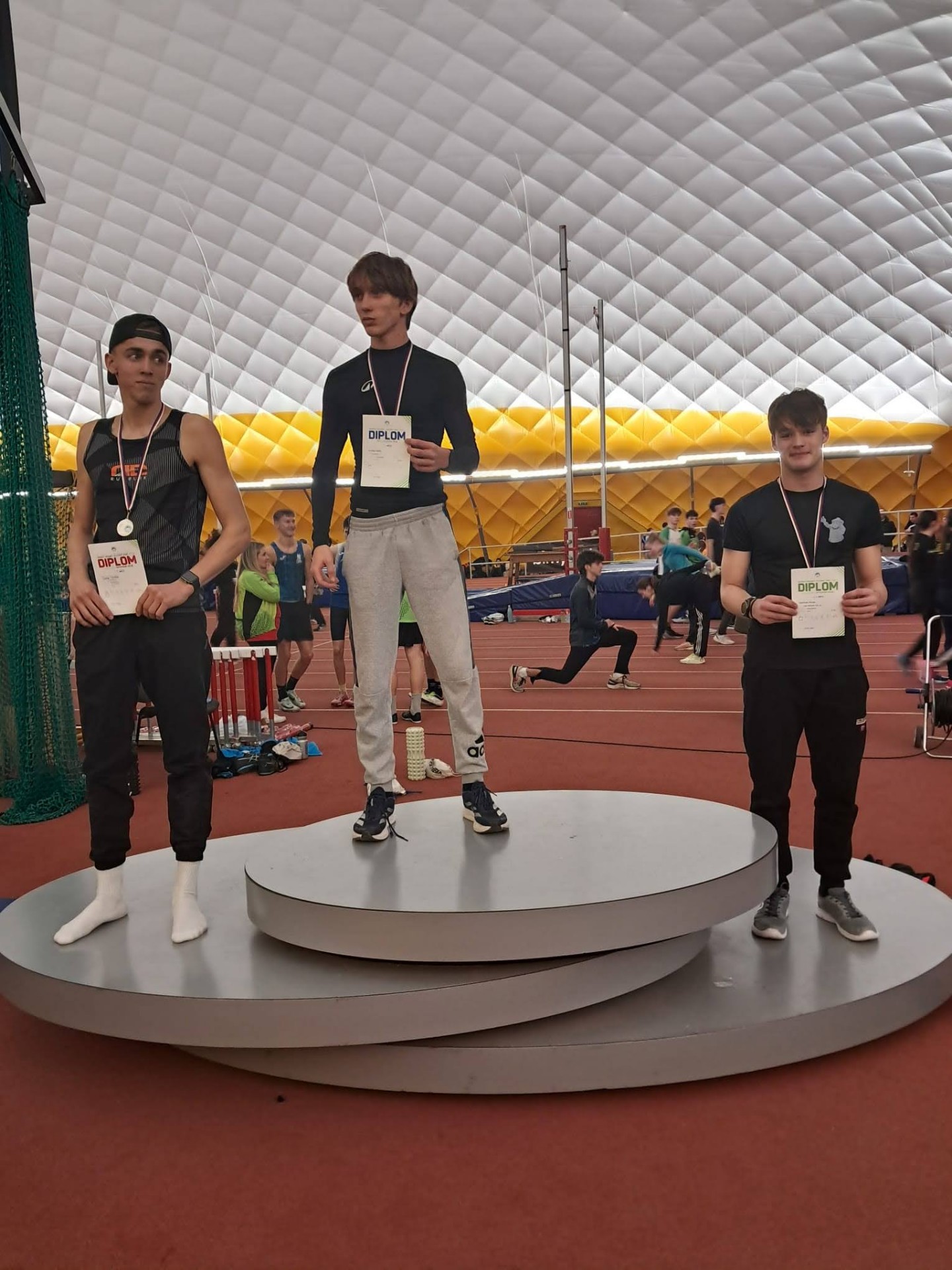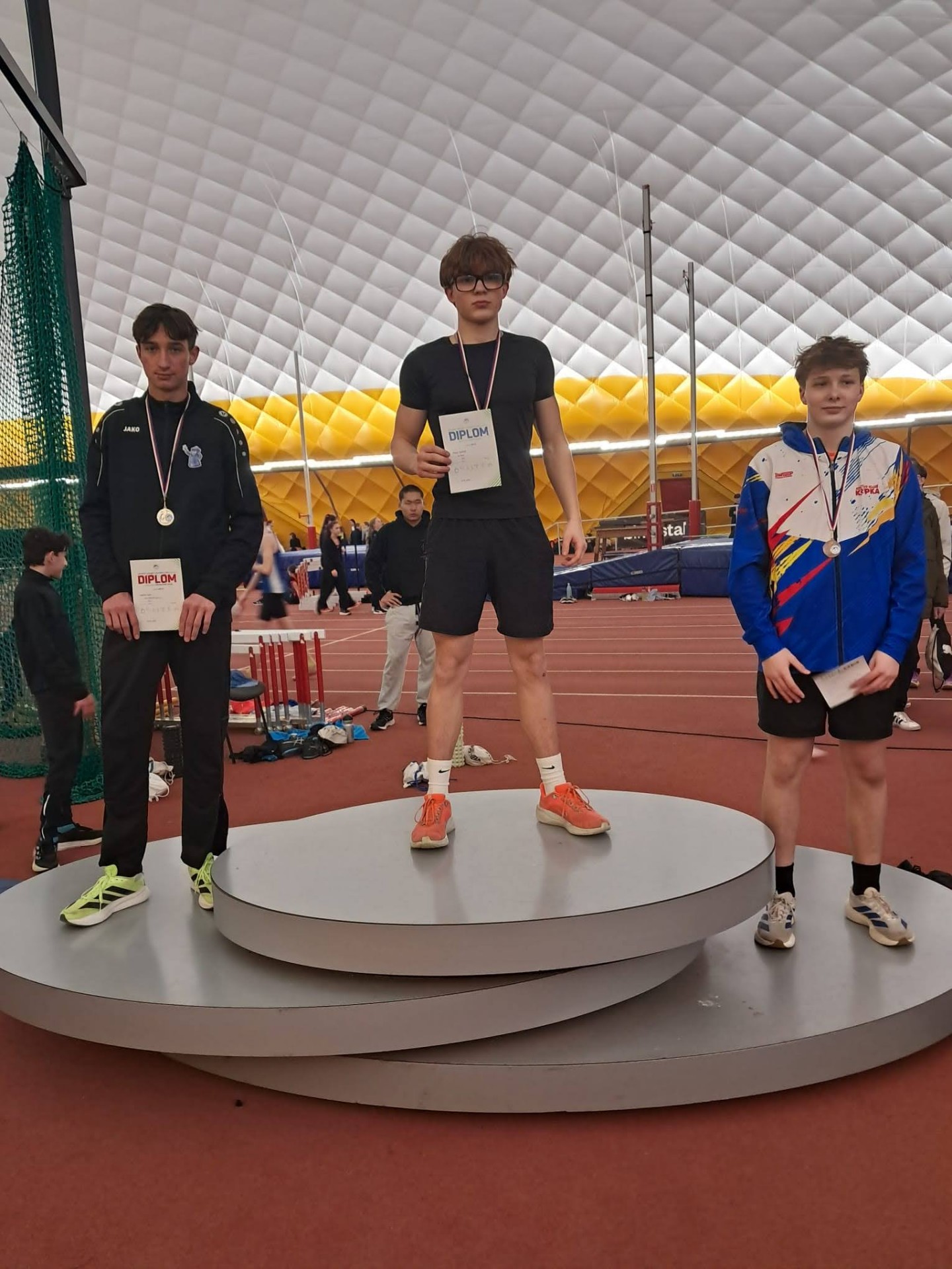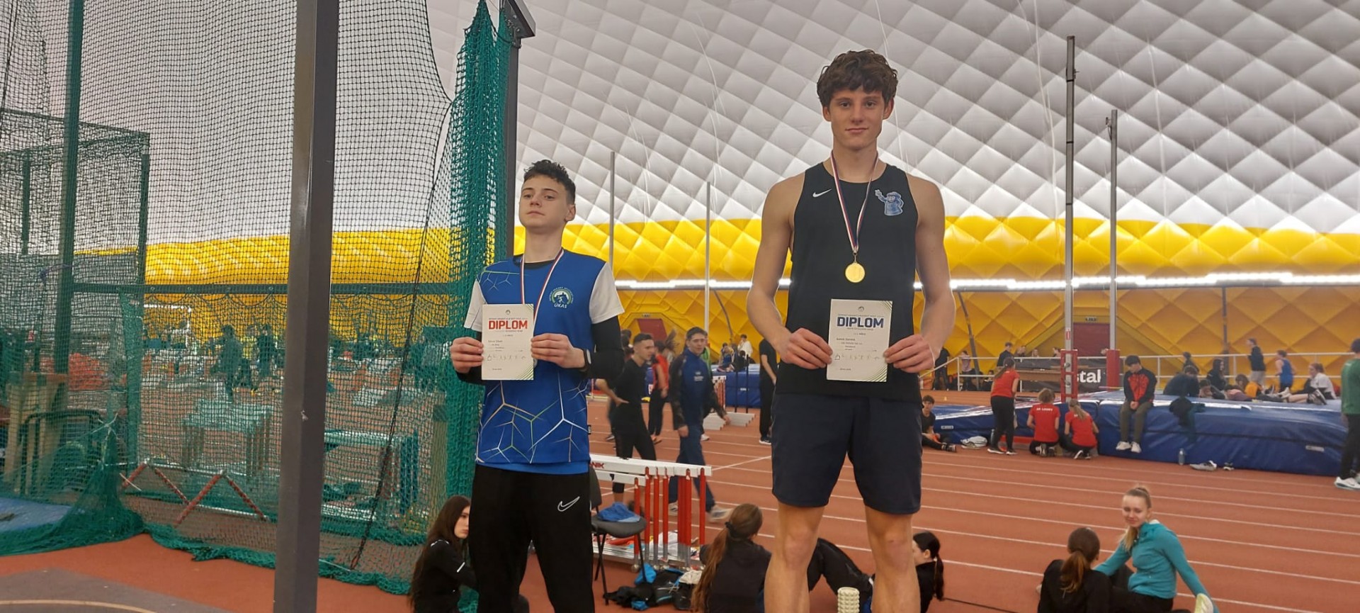 Dominik přidal ještě 2. místo v trojskoku a byl členem juniorské štafety, které doběhla také na 2. místě. Alex byl 2. v běhu na 300 m a 3. ve skoku dalekém.