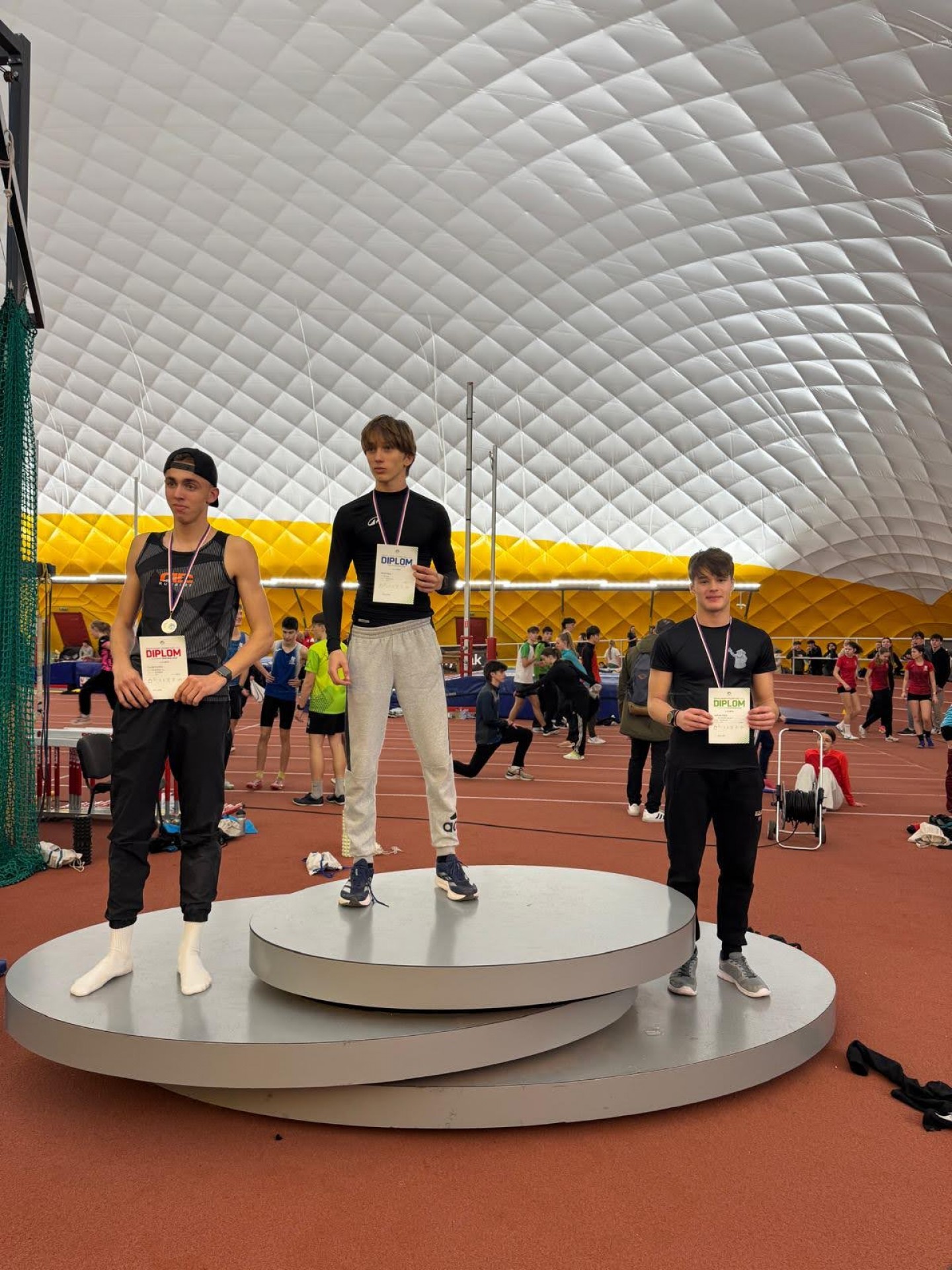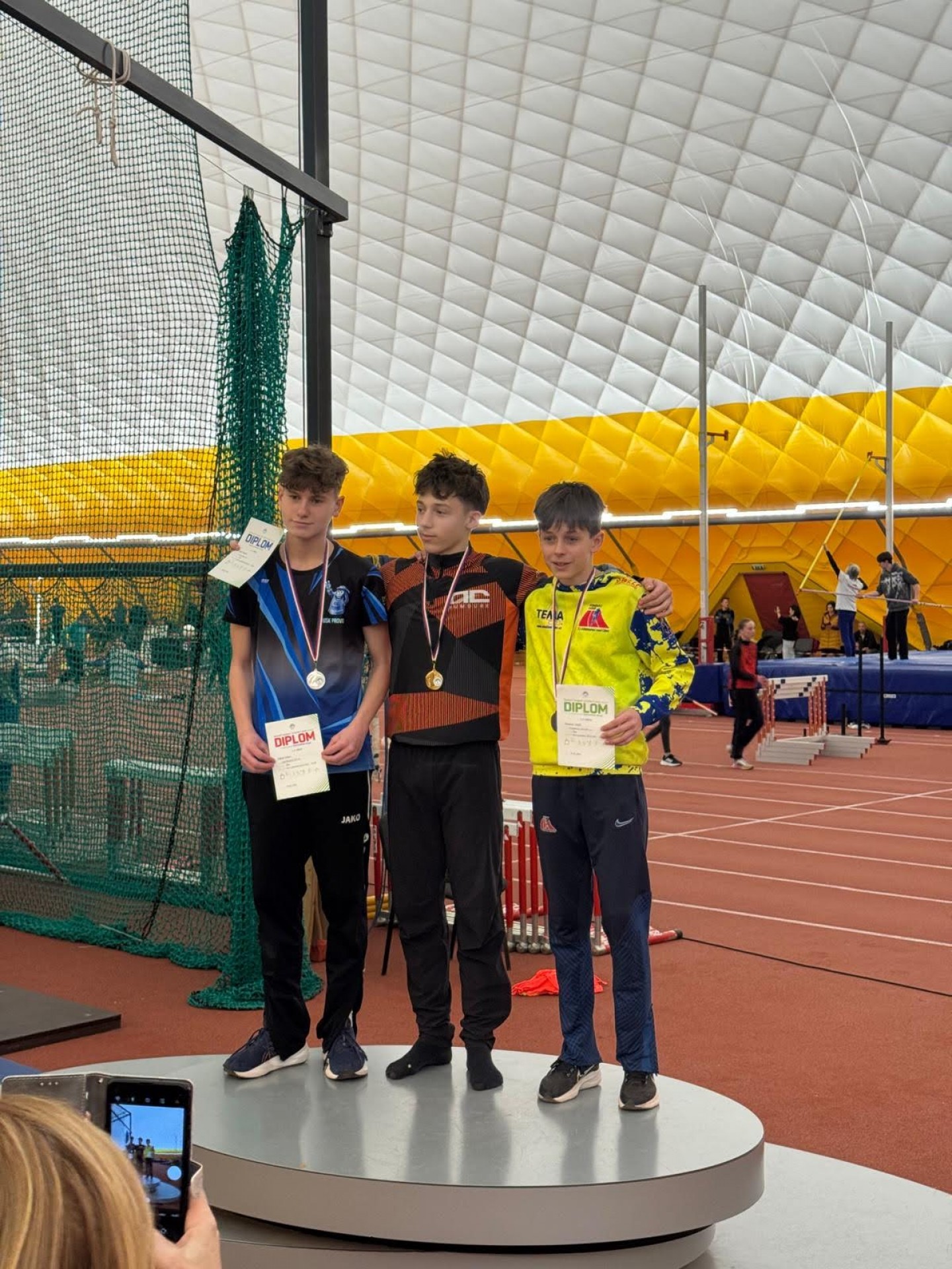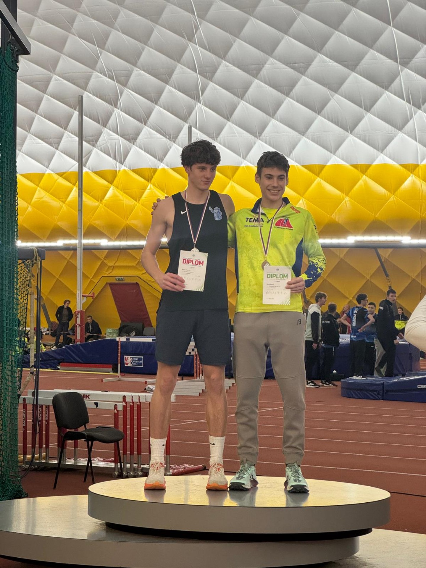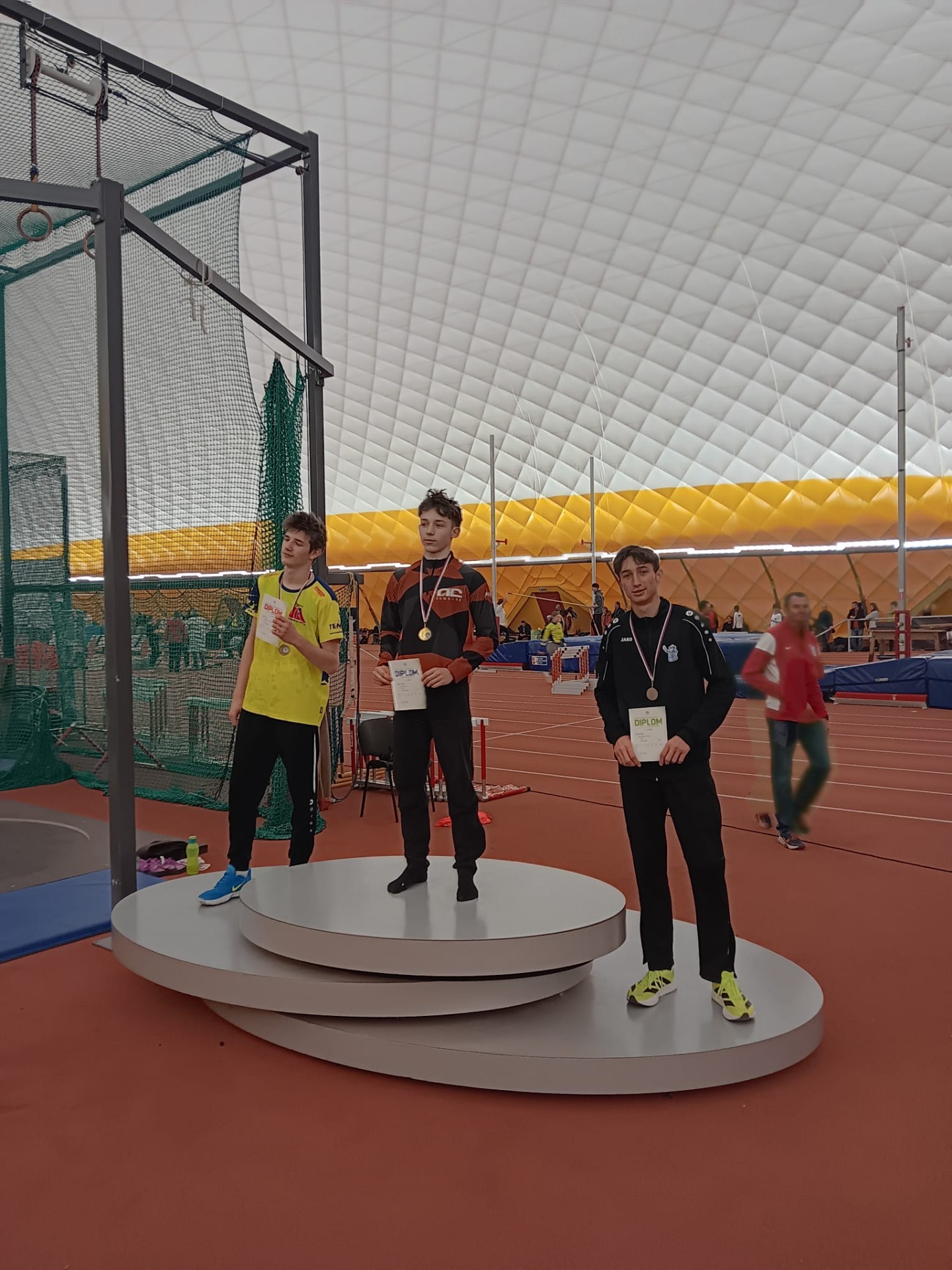 Dominik přidal ještě 2. místo v trojskoku a byl členem juniorské štafety, které doběhla také na 2. místě. Alex byl 2. v běhu na 300 m a 3. ve skoku dalekém.